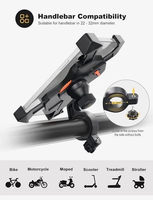 - Compatible avec une grande variété de véhicules : Ce support est adapté pour vélo, trottinette électrique et scooter, ce qui en fait un choix polyvalent pour les utilisateurs mobiles.