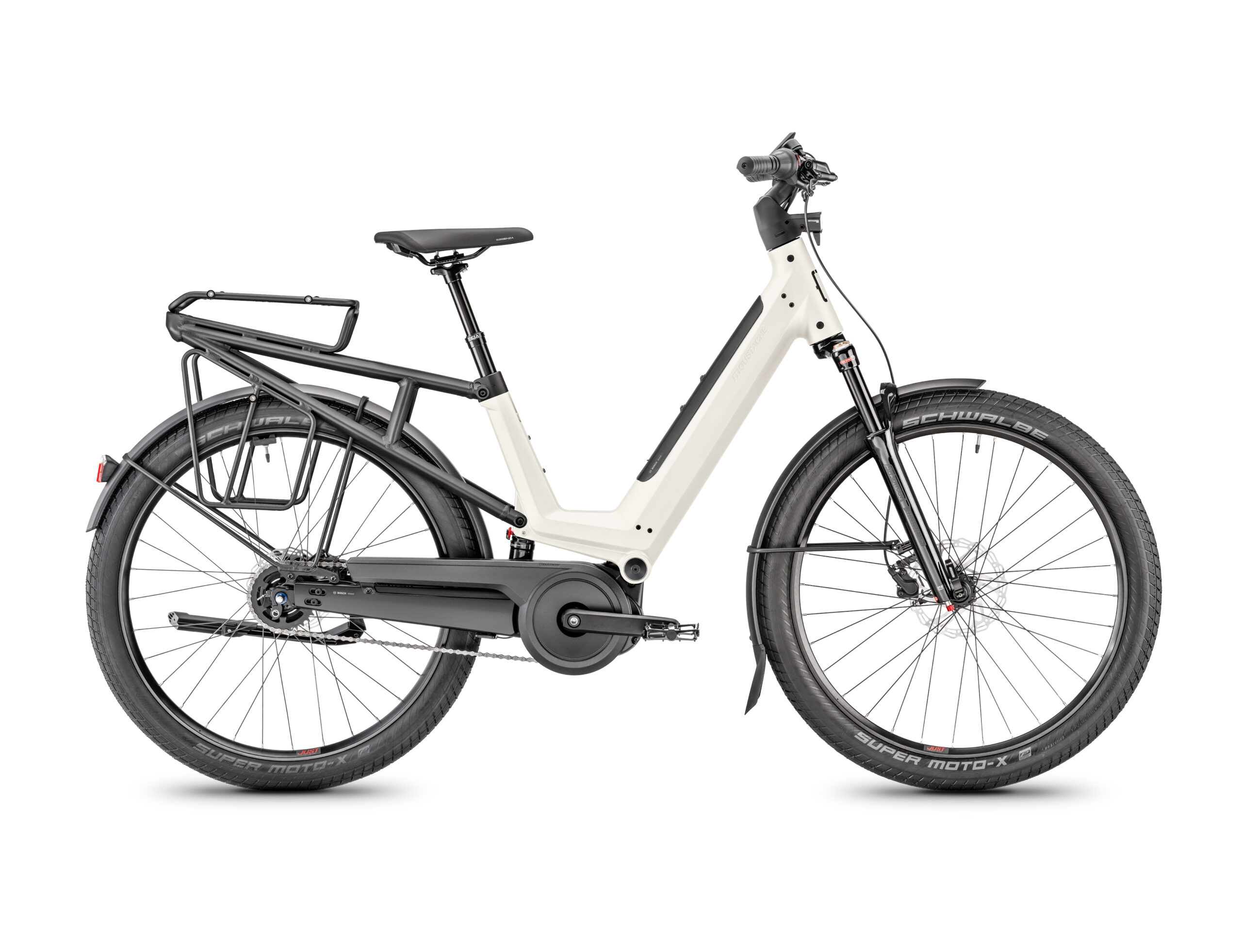 | Moustache J‑On Nexus Suspended | Bosch 75 Nm | 625 Wh PowerTube | Shimano Nexus 5‑vit. | 100 mm avant + 115 mm arrière | 30,3 kg | 7 699 € |